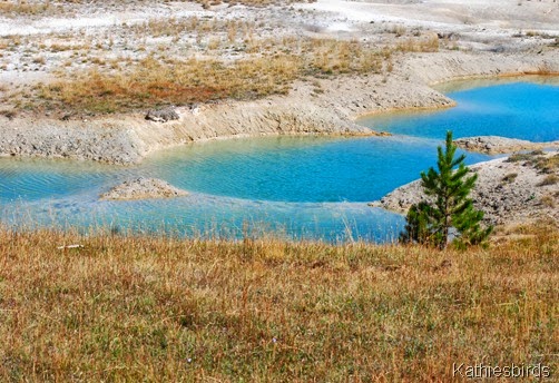 In all my prior visits to Yellowstone National Park Gus and I have never stopped to explore the West Thumb Geyser Basin. So, as we came around the south end of the park we decided to stop here and explore someplace new. The juxtaposition of hot springs and cold, clear blue water is striking. We walked the boardwalks wide-eyed and full of wonder.