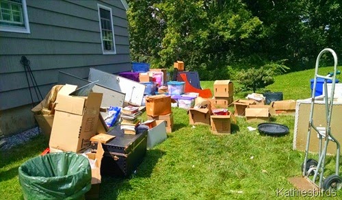 Meanwhile, a pair of carpenters spent the day here putting in new basement windows with screens, so now we could open them! The carpenters and I were all racing the weather as more rain showers were predicted for the afternoon. We both got our tasks down just as the rain started to fall! I had to bring some stuff inside the house just to get it out of the rain. I did not have time to sit outside and sort through it all!
